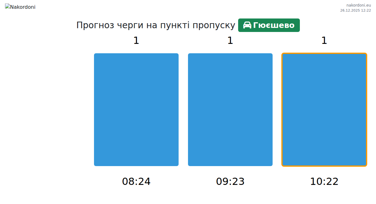 За період 25.12.2025 з 00:00 по 23:59 на кордоні на пункті пропуску Гюєшево - легковий автомобіль були зафіксовані наступні ключові моменти: