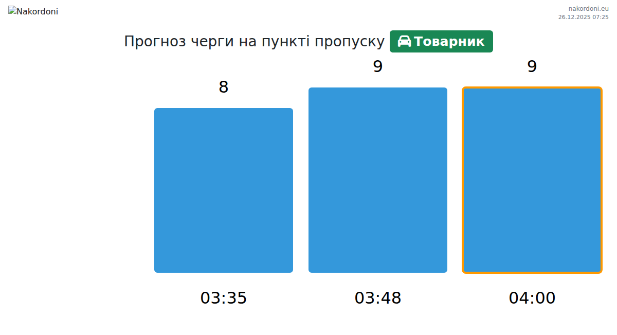 За період 25.12.2025 з 00:00 по 23:59 на кордоні на пункті пропуску Товарник - легковий автомобіль були зафіксовані наступні ключові моменти: