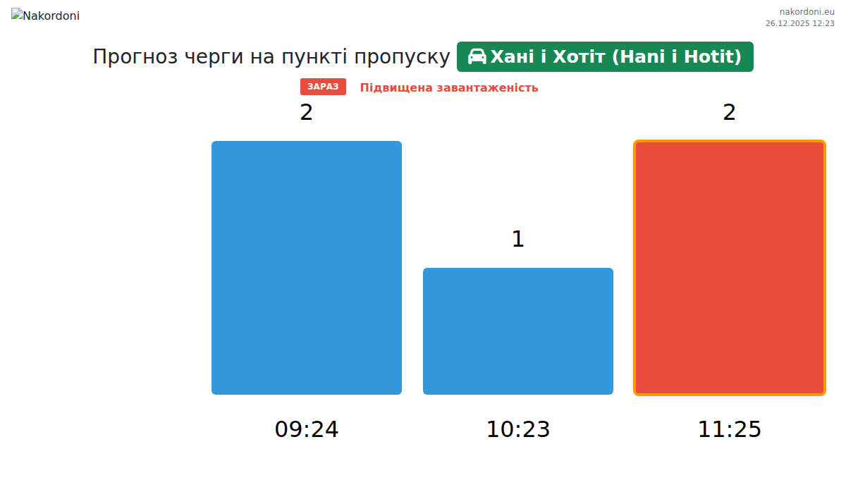 За період 25.12.2025 з 00:00 по 23:59 на кордоні на пункті пропуску Хані і Хотіт (Hani i Hotit) - авто були зафіксовані наступні ключові моменти: