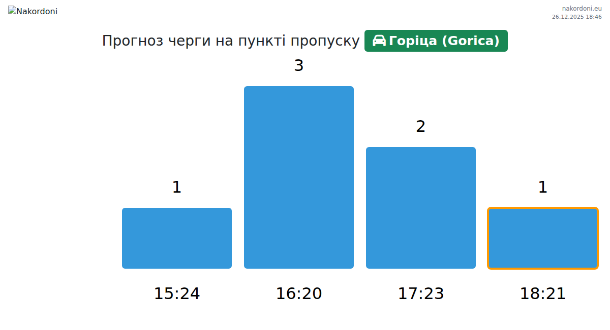 Аналіз черги на кордоні на пункті пропуску Горіца (Gorica) - легковий автомобіль за вчора