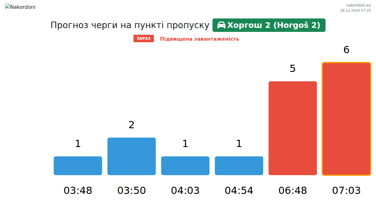 За період 25.12.2025 з 00:00 по 23:59 на кордоні на пункті пропуску Хоргош 2 (Horgoš 2) - легковий автомобіль були зафіксовані наступні ключові моменти: