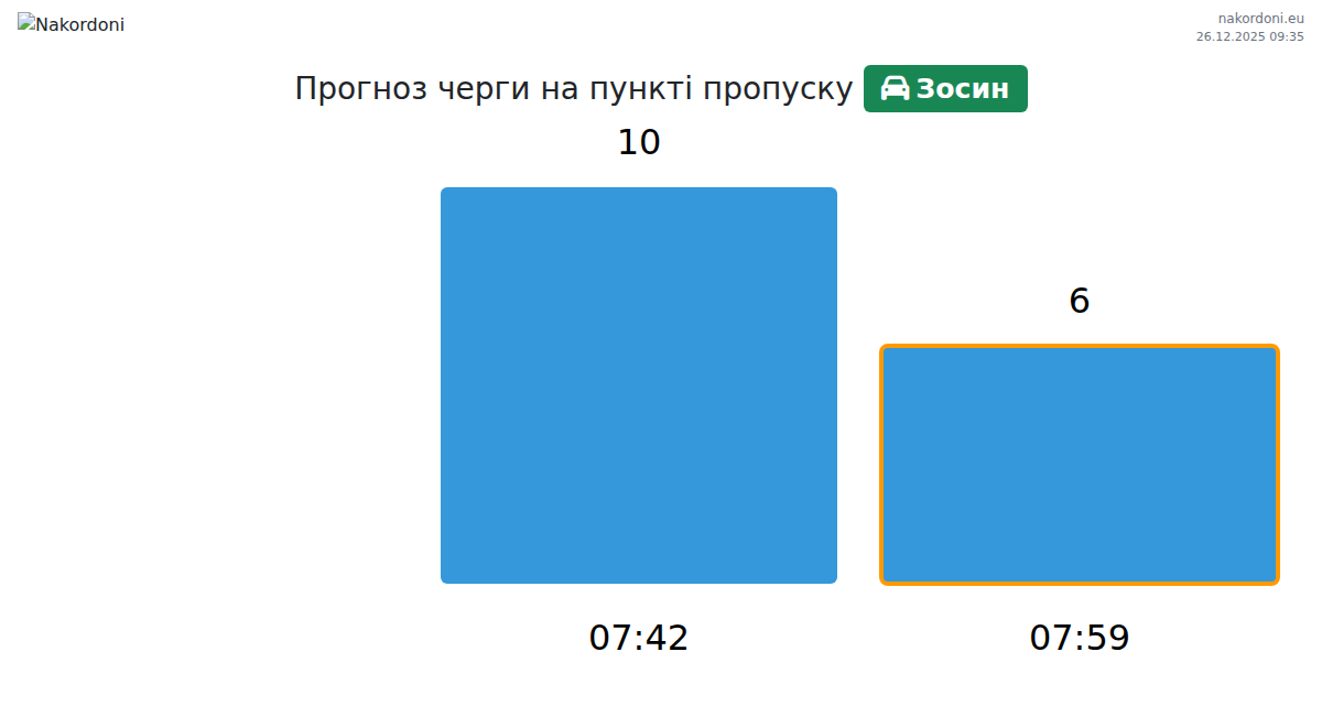 За період 25.12.2025 з 00:00 по 23:59 на кордоні на пункті пропуску Зосин - легковий автомобіль були зафіксовані наступні ключові моменти: