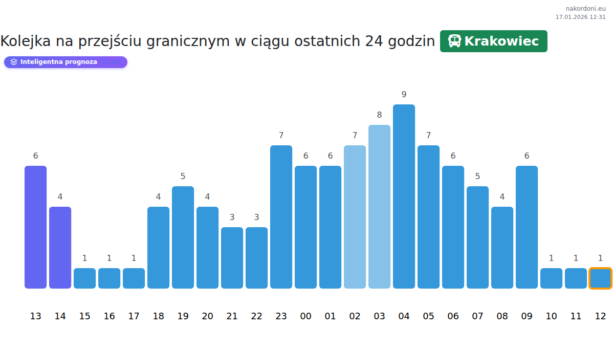 Planuj swoje podróże z wyprzedzeniem, korzystając z aktualnych informacji o kolejkach na granicy na punkcie kontrolnym Krakowiec - autobus, aby przejazd był szybki i wygodny. Zwróć szczególną uwagę na te godziny, aby uniknąć szczytowego natężenia i skrócić czas oczekiwania.