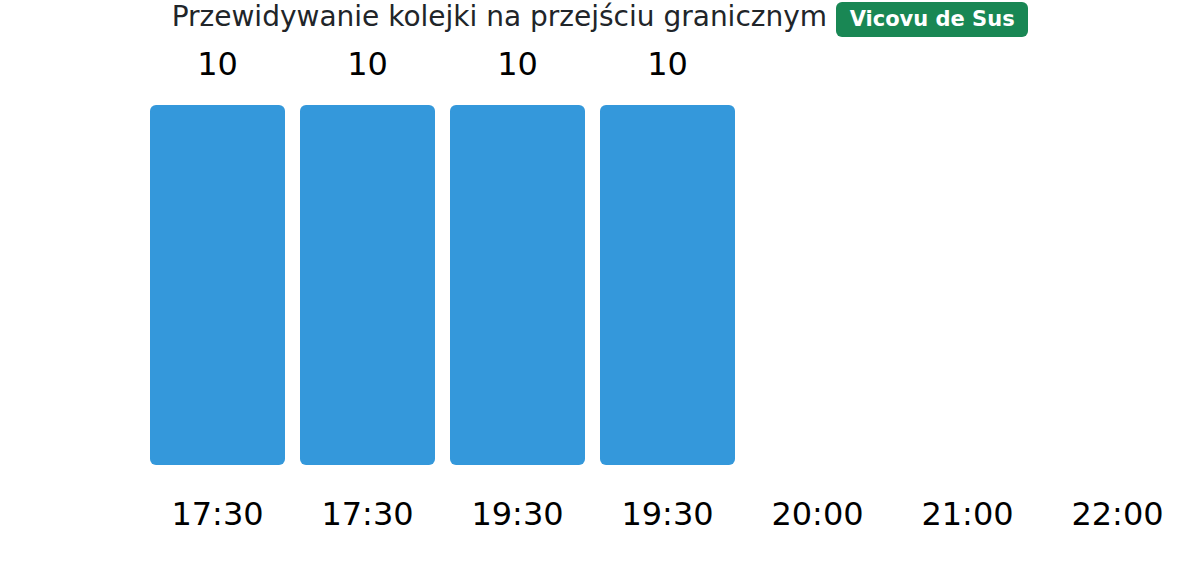 Planuj swoje podróże z wyprzedzeniem, korzystając z aktualnych informacji o kolejkach na granicy na punkcie kontrolnym Vicovu de Sus - samochód osobowy, aby przejazd był szybki i wygodny. Zwróć szczególną uwagę na te godziny, aby uniknąć szczytowego natężenia i skrócić czas oczekiwania.