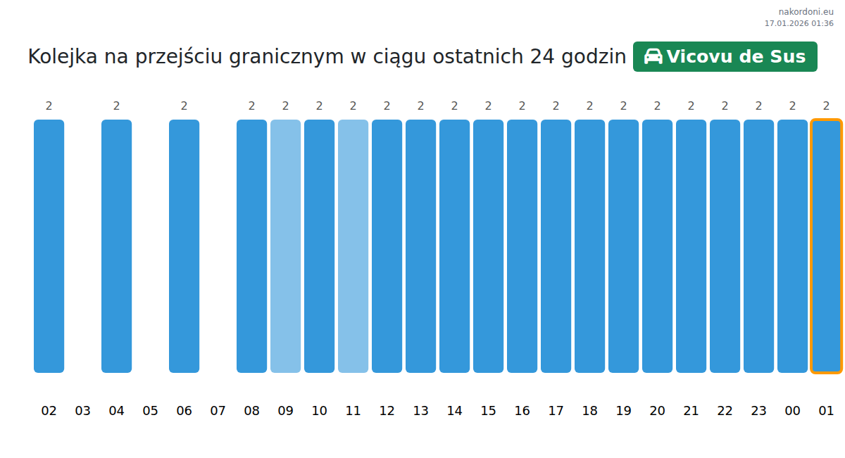 Analiza kolejek na granicy na punkcie kontrolnym Vicovu de Sus - samochód osobowy za wczoraj