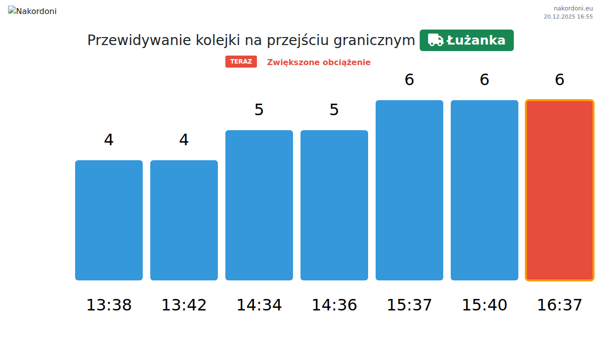 Planuj swoje podróże z wyprzedzeniem, korzystając z aktualnych informacji o kolejkach na granicy na punkcie kontrolnym Łużanka - transport ciężarowy, aby przejazd był szybki i wygodny. Zwróć szczególną uwagę na te godziny, aby uniknąć szczytowego natężenia i skrócić czas oczekiwania.