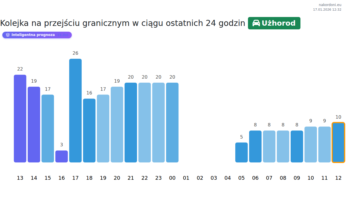Planuj swoje podróże z wyprzedzeniem, korzystając z aktualnych informacji o kolejkach na granicy na punkcie kontrolnym Użhorod - samochód osobowy, aby przejazd był szybki i wygodny. Zwróć szczególną uwagę na te godziny, aby uniknąć szczytowego natężenia i skrócić czas oczekiwania.