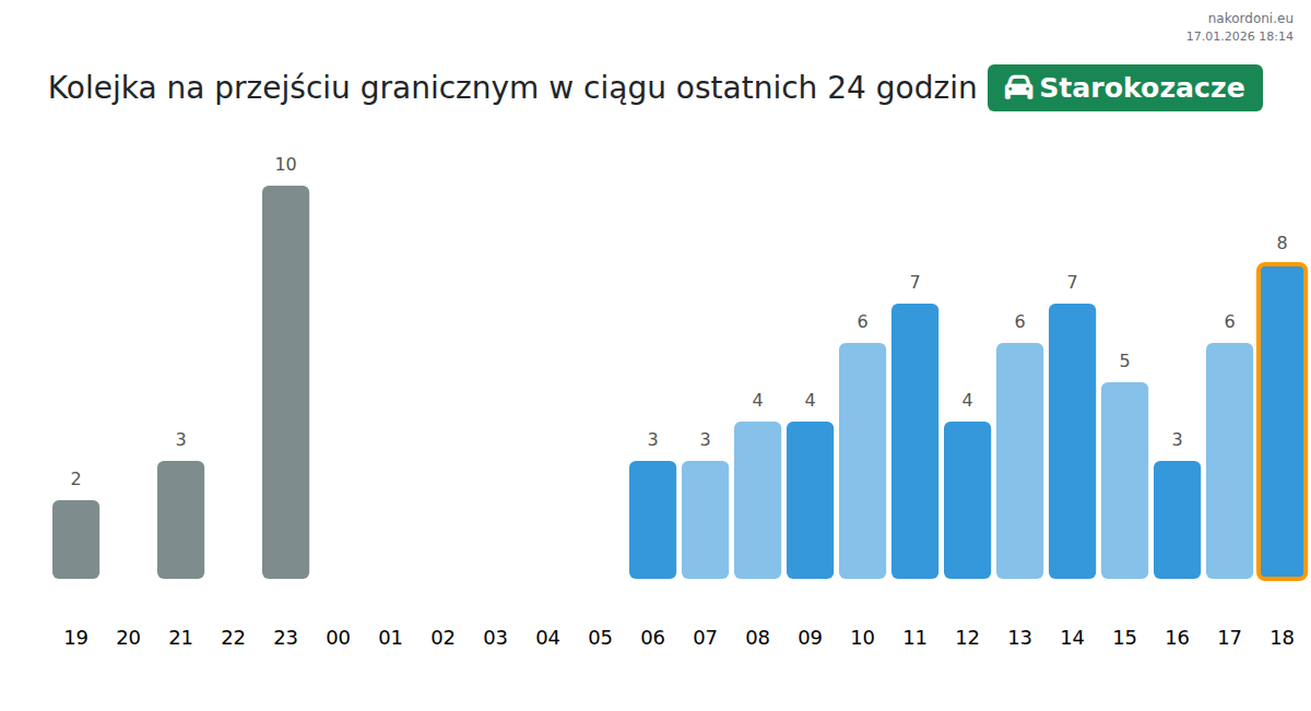 Aby uniknąć długich kolejek na granicy na punkcie kontrolnym Starokozacze - samochód osobowy, zaleca się planowanie przekraczania granicy w godzinach najmniejszego obciążenia. Według danych z ostatniego dnia, najmniejsza liczba pojazdów była obserwowana między 14:00 a 20:00 godziną. To idealny czas na przekroczenie granicy, oszczędzając czas i unikając opóźnień.