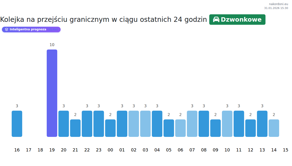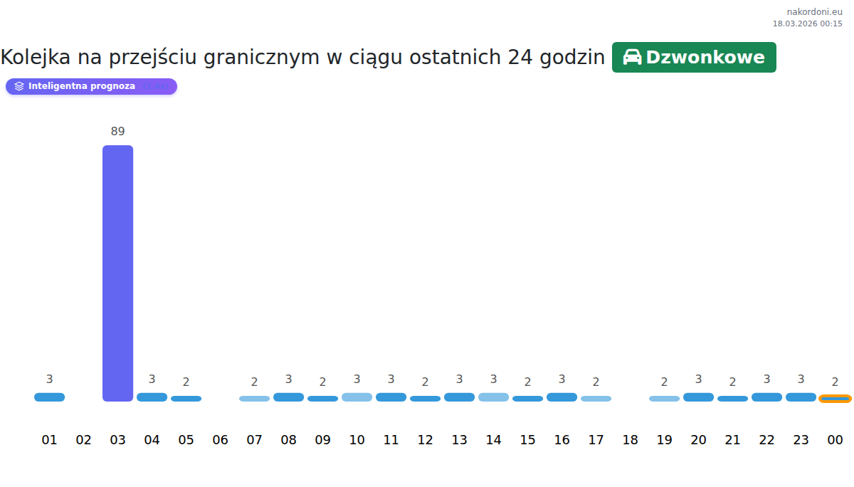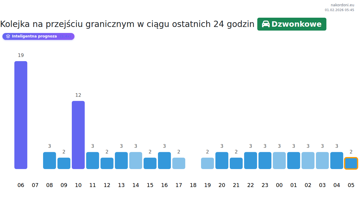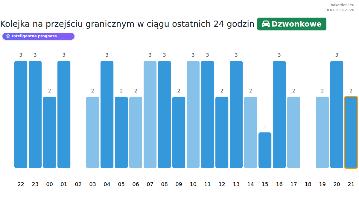 Analiza kolejek na granicy na punkcie kontrolnym Dzwonkowe - samochód osobowy za wczoraj