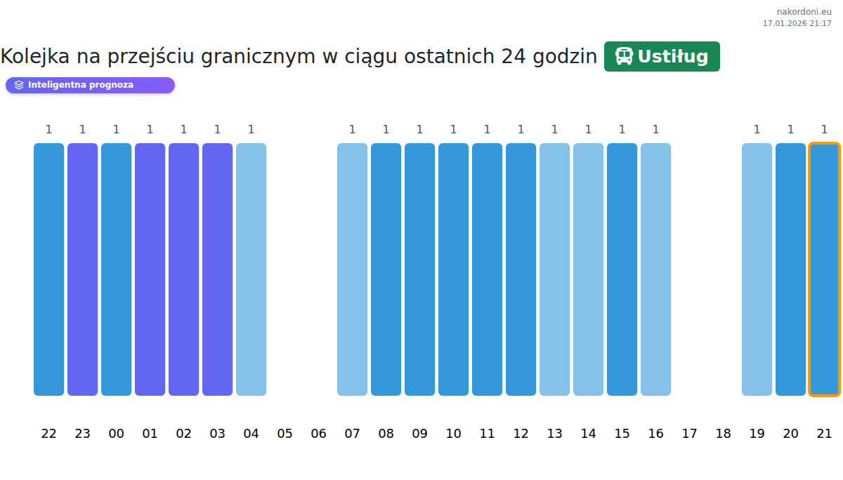 Planuj swoje podróże z wyprzedzeniem, korzystając z aktualnych informacji o kolejkach na granicy na punkcie kontrolnym Ustiług - autobus, aby przejazd był szybki i wygodny. Zwróć szczególną uwagę na te godziny, aby uniknąć szczytowego natężenia i skrócić czas oczekiwania.