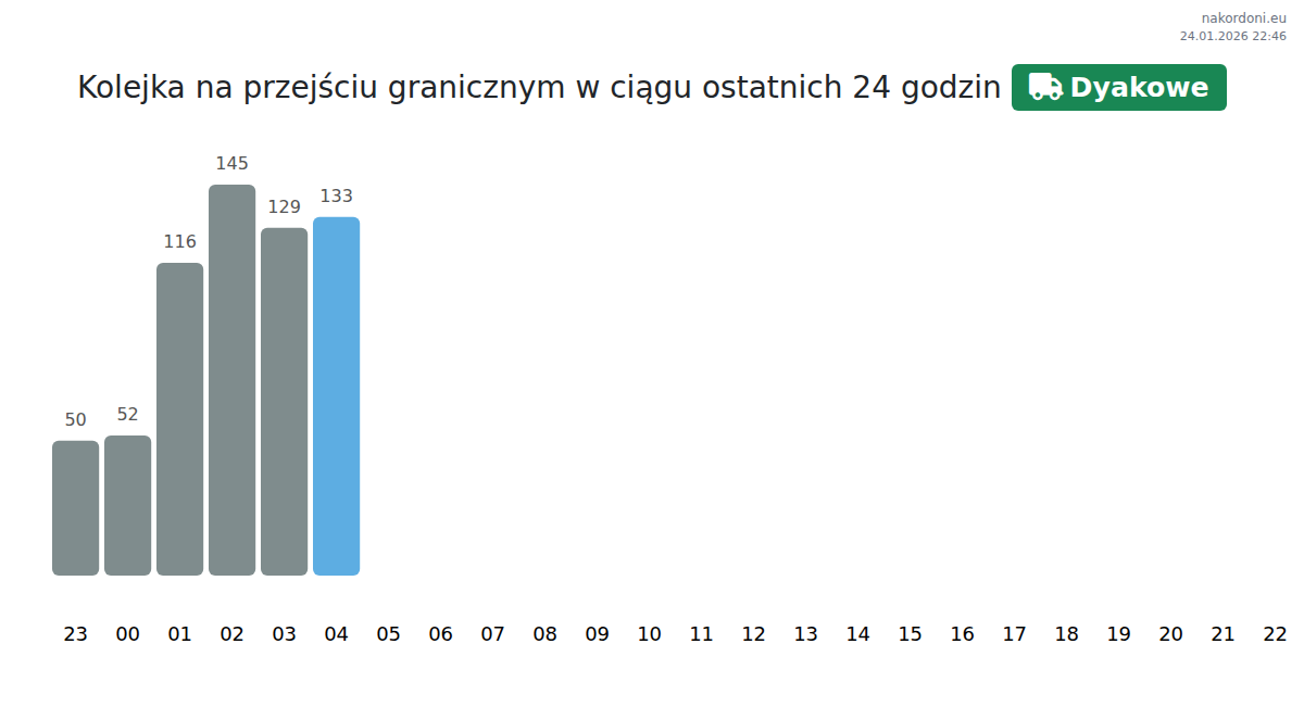 Aby uniknąć długich kolejek na granicy na punkcie kontrolnym Dyakowe - transport ciężarowy, zaleca się planowanie przekraczania granicy w godzinach najmniejszego obciążenia. Według danych z ostatniego dnia, najmniejsza liczba pojazdów była obserwowana między 4:00 a 5:00 godziną. To idealny czas na przekroczenie granicy, oszczędzając czas i unikając opóźnień.