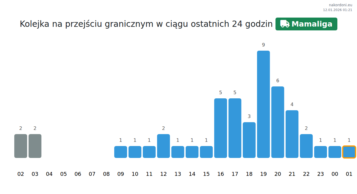 Kolejka na przejściu granicznym w ciągu ostatnich 24 godzin