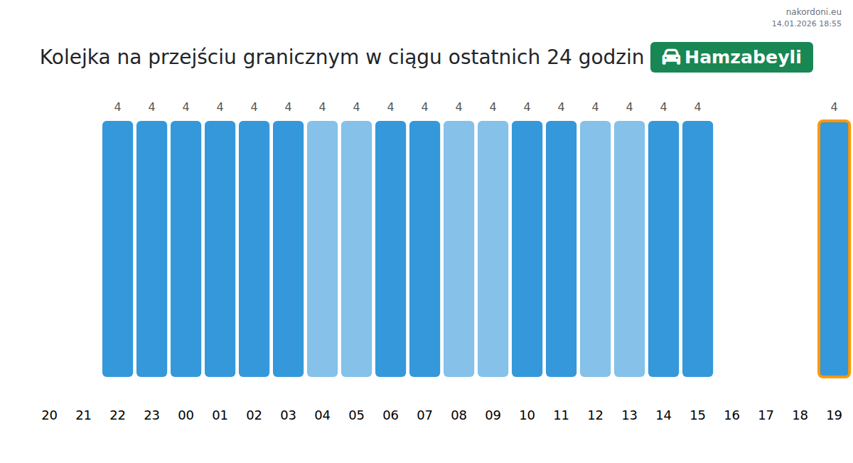 Analiza kolejek na granicy na punkcie kontrolnym Hamzabeyli - samochód osobowy za wczoraj