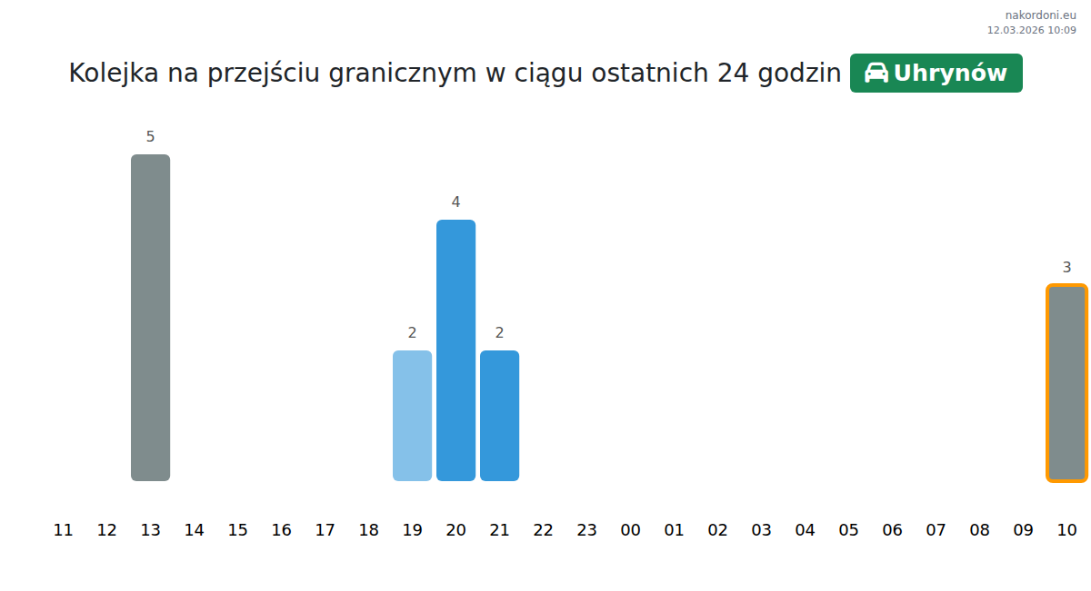 Aby uniknąć długich kolejek na granicy na punkcie kontrolnym Uhrynów - samochód osobowy, zaleca się planowanie przekraczania granicy w godzinach najmniejszego obciążenia. Według danych z ostatniego dnia, najmniejsza liczba pojazdów była obserwowana między :00 a 11:00 godziną. To idealny czas na przekroczenie granicy, oszczędzając czas i unikając opóźnień.