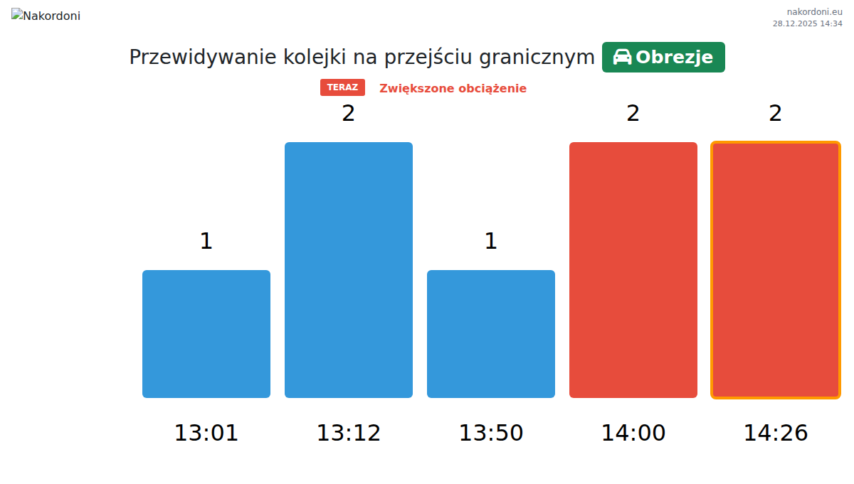 Planuj swoje podróże z wyprzedzeniem, korzystając z aktualnych informacji o kolejkach na granicy na punkcie kontrolnym Obrezje - samochód osobowy, aby przejazd był szybki i wygodny. Zwróć szczególną uwagę na te godziny, aby uniknąć szczytowego natężenia i skrócić czas oczekiwania.
