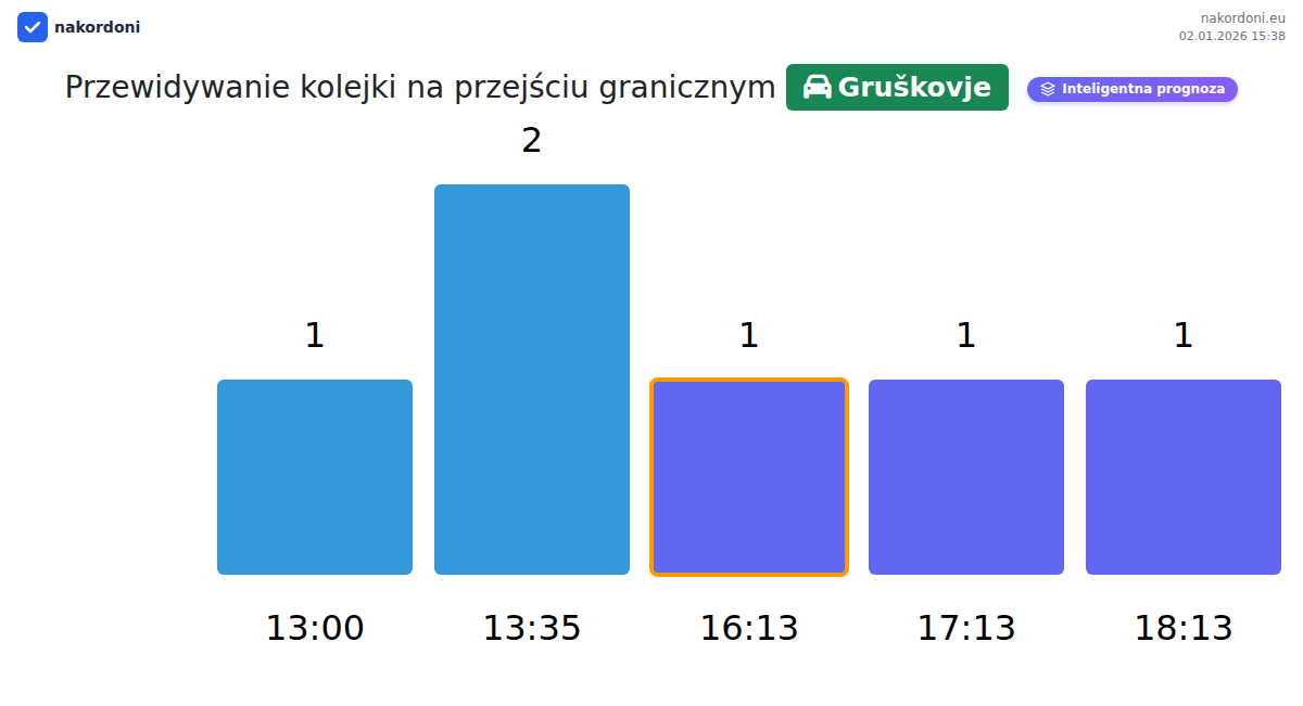 Analiza kolejek na granicy na punkcie kontrolnym Gruškovje - samochód osobowy za wczoraj