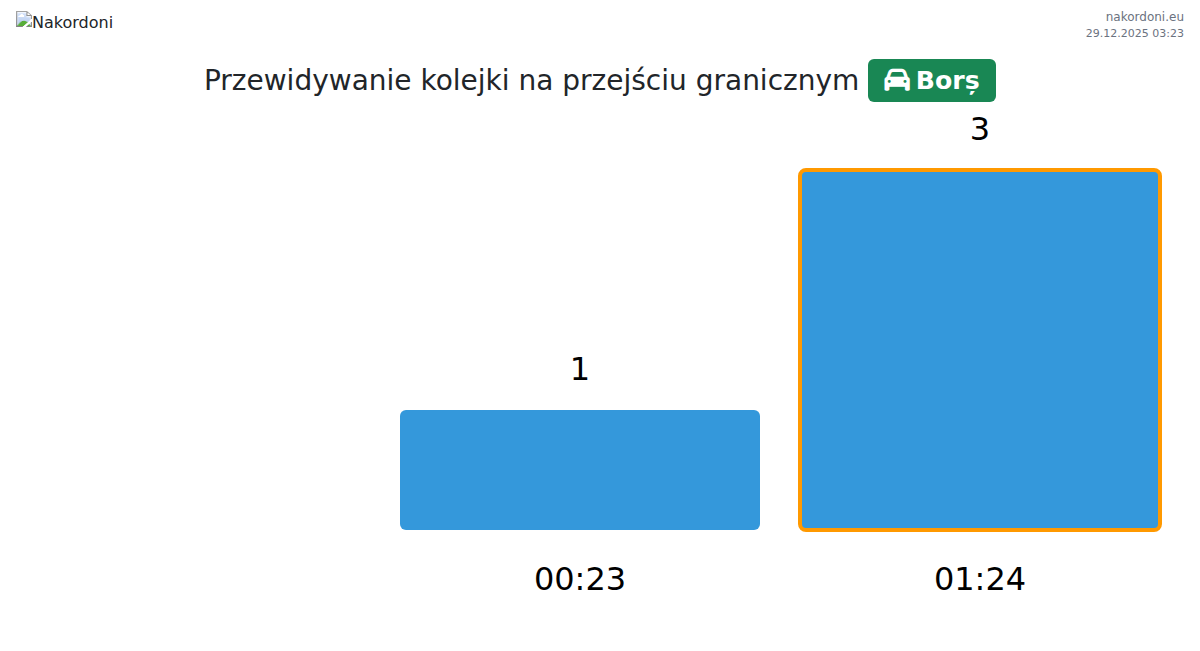 Aby uniknąć długich kolejek na granicy na punkcie kontrolnym Borș - samochód osobowy, zaleca się planowanie przekraczania granicy w godzinach najmniejszego obciążenia. Według danych z ostatniego dnia, najmniejsza liczba pojazdów była obserwowana między :00 a 3:00 godziną. To idealny czas na przekroczenie granicy, oszczędzając czas i unikając opóźnień.