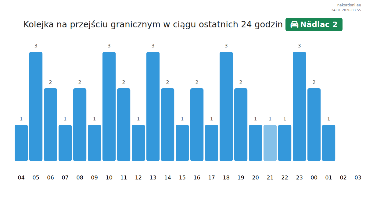 Kolejka na przejściu granicznym w ciągu ostatnich 24 godzin