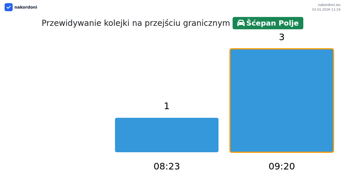 Aby uniknąć długich kolejek na granicy na punkcie kontrolnym Šćepan Polje - samochód osobowy, zaleca się planowanie przekraczania granicy w godzinach najmniejszego obciążenia. Według danych z ostatniego dnia, najmniejsza liczba pojazdów była obserwowana między :00 a 2:00 godziną. To idealny czas na przekroczenie granicy, oszczędzając czas i unikając opóźnień.