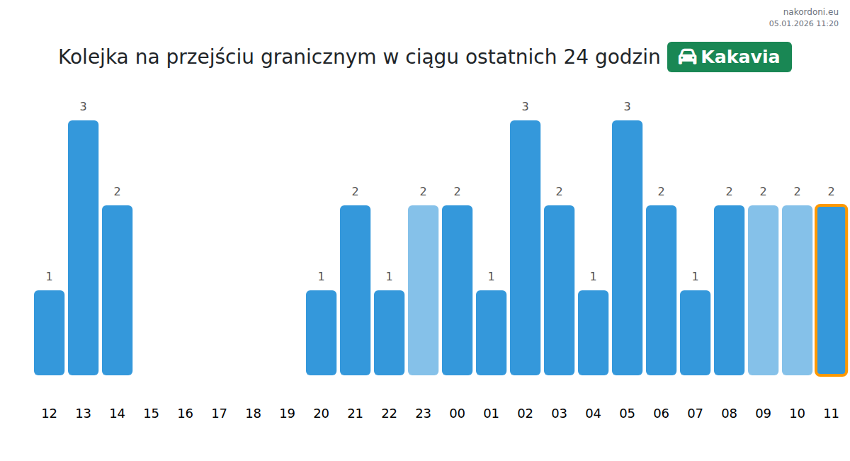 Aby uniknąć długich kolejek na granicy na punkcie kontrolnym Kakavia - samochód osobowy, zaleca się planowanie przekraczania granicy w godzinach najmniejszego obciążenia. Według danych z ostatniego dnia, najmniejsza liczba pojazdów była obserwowana między 1:00 a 4:00 godziną. To idealny czas na przekroczenie granicy, oszczędzając czas i unikając opóźnień.
