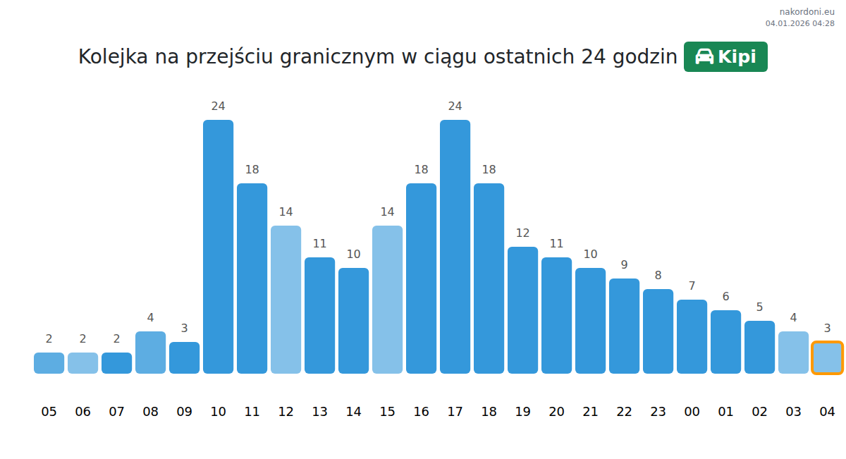 Kolejka na przejściu granicznym w ciągu ostatnich 24 godzin