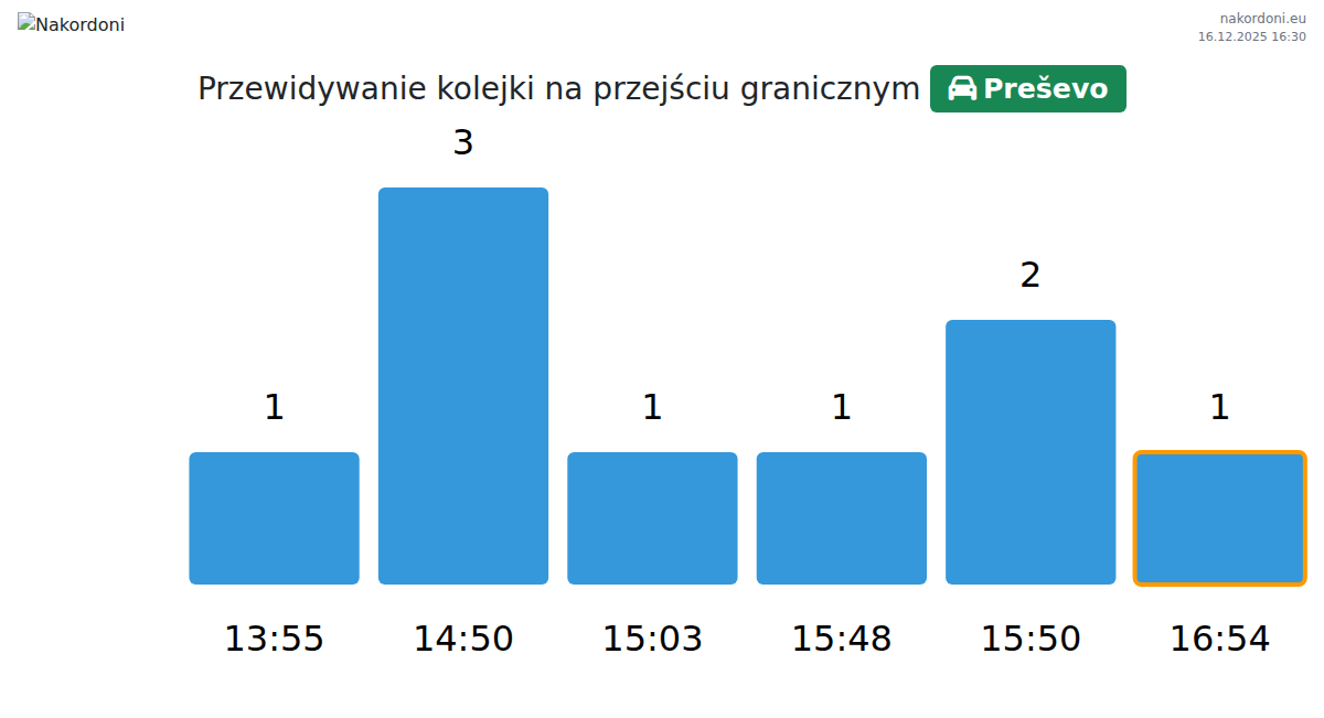 W okresie 15.12.2025 od 00:00 do 23:59 na granicy na punkcie kontrolnym Preševo - samochód osobowy zarejestrowano następujące kluczowe momenty: