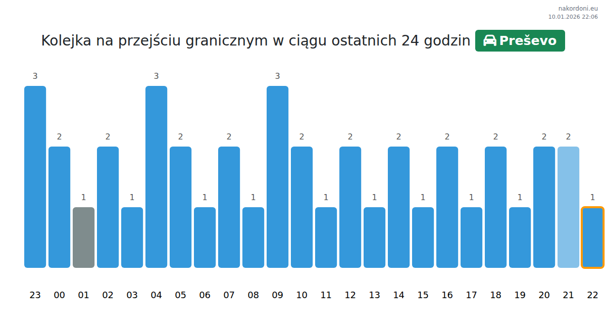 Aby uniknąć długich kolejek na granicy na punkcie kontrolnym Preševo - samochód osobowy, zaleca się planowanie przekraczania granicy w godzinach najmniejszego obciążenia. Według danych z ostatniego dnia, najmniejsza liczba pojazdów była obserwowana między :00 a 3:00 godziną. To idealny czas na przekroczenie granicy, oszczędzając czas i unikając opóźnień.