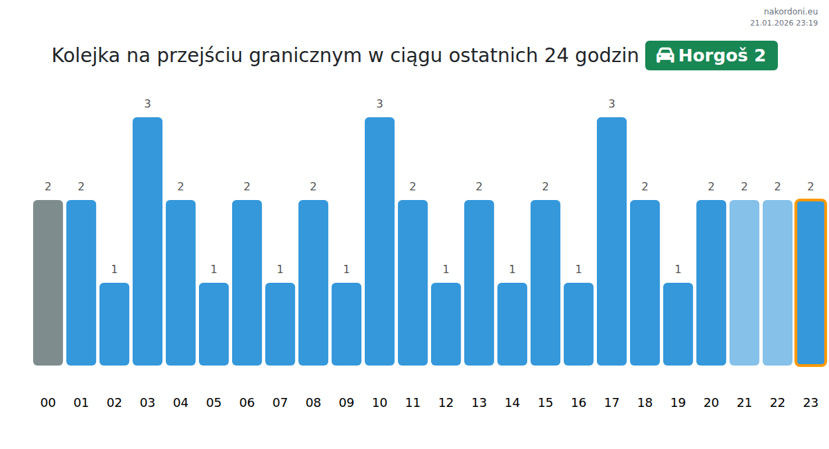 Aby uniknąć długich kolejek na granicy na punkcie kontrolnym Horgoš 2 - samochód osobowy, zaleca się planowanie przekraczania granicy w godzinach najmniejszego obciążenia. Według danych z ostatniego dnia, najmniejsza liczba pojazdów była obserwowana między :00 a 2:00 godziną. To idealny czas na przekroczenie granicy, oszczędzając czas i unikając opóźnień.