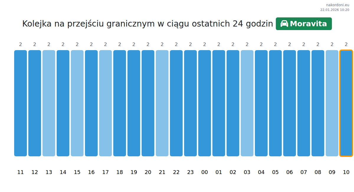 Analiza kolejek na granicy na punkcie kontrolnym Moravita - samochód osobowy za wczoraj