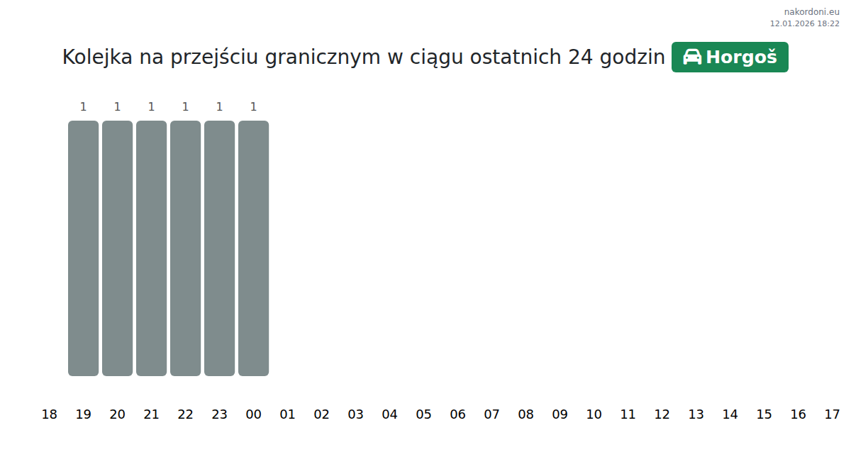 Na przejściu granicznym Horgoš przewidywany czas oczekiwania dla samochodów osobowych wynosi 20-20 minut. Unikaj godzin szczytu: 22:00, 23:00 i 00:00. Najlepszy czas na przekroczenie to 01:00-03:00, kiedy kolejki są najkrótsze.