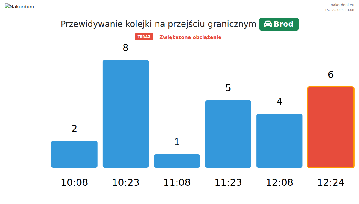 Analiza kolejek na granicy na punkcie kontrolnym Brod - samochód osobowy za wczoraj