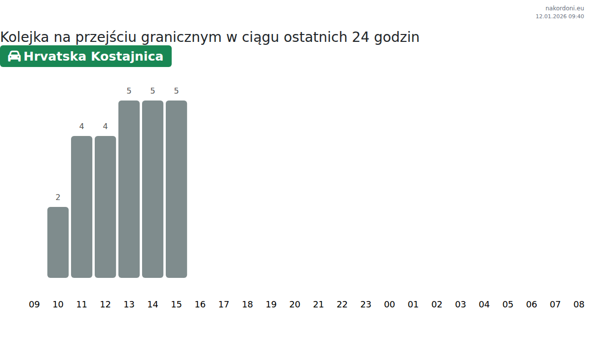 Analiza kolejek na granicy na punkcie kontrolnym Hrvatska Kostajnica - samochód osobowy za wczoraj