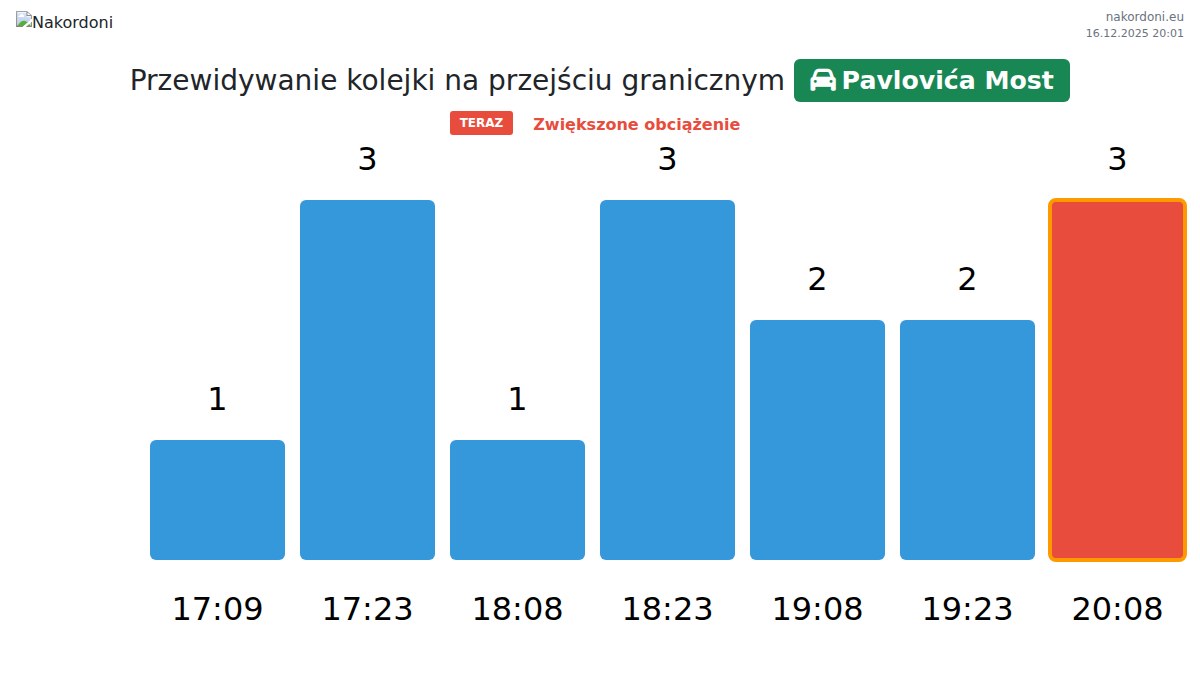 Aby uniknąć długich kolejek na granicy na punkcie kontrolnym Pavlovića Most - samochód osobowy, zaleca się planowanie przekraczania granicy w godzinach najmniejszego obciążenia. Według danych z ostatniego dnia, najmniejsza liczba pojazdów była obserwowana między :00 a 1:00 godziną. To idealny czas na przekroczenie granicy, oszczędzając czas i unikając opóźnień.