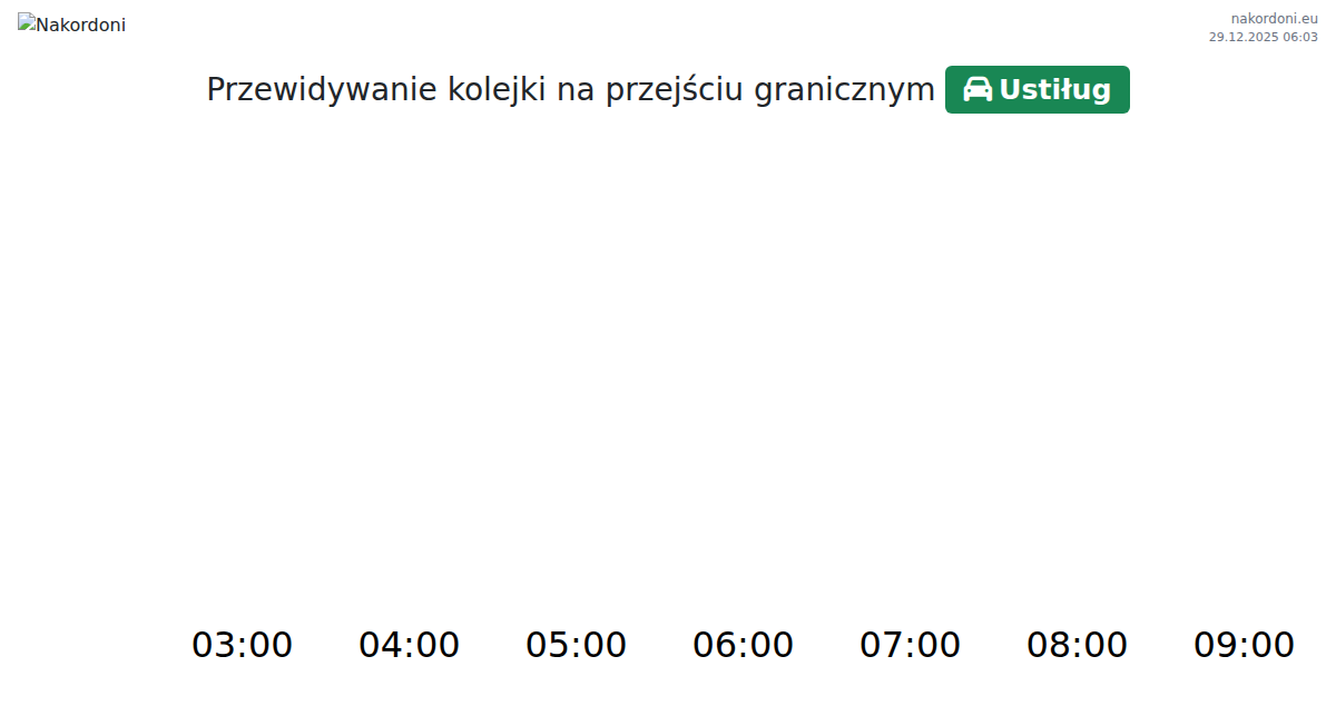 Na przejściu Ustiług czas oczekiwania dla samochodów osobowych wynosi od 15 do 1975 minut. Unikaj szczytów o 15:00, 21:00 i 18:00, by uniknąć korków. Najlepiej zaplanować przejazd w godzinach 01:00, 02:00 lub 05:00.