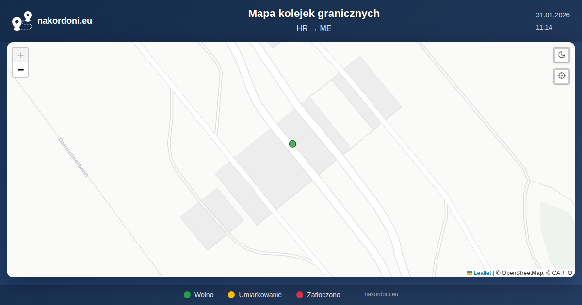 Interaktywna mapa granicy Chorwacja — Czarnogóra z kolejkami na żywo, prognozą i statusem przejść