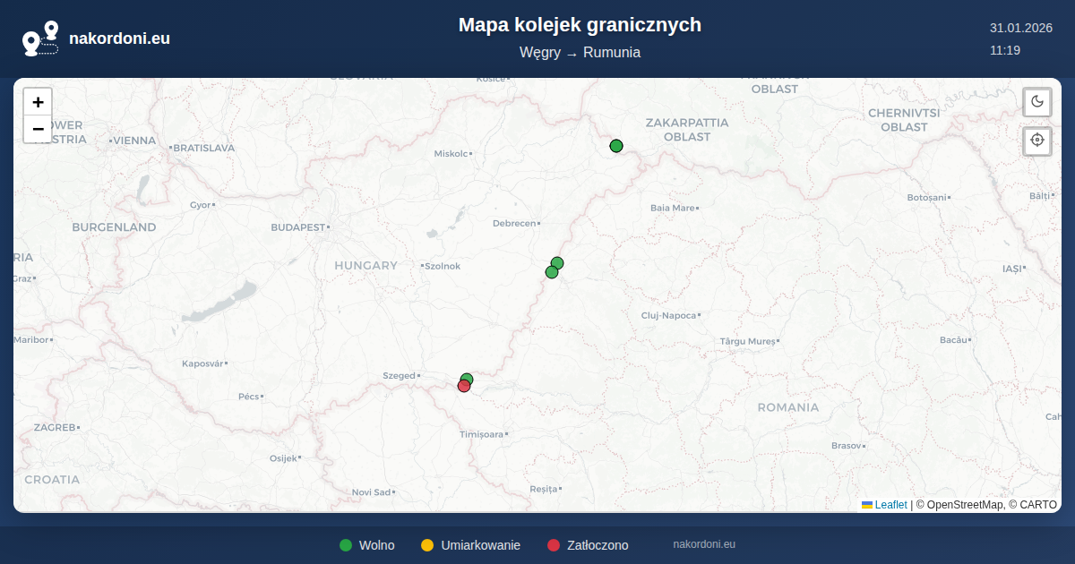 Interaktywna mapa granicy Węgry — Rumunia z kolejkami na żywo, prognozą i statusem przejść