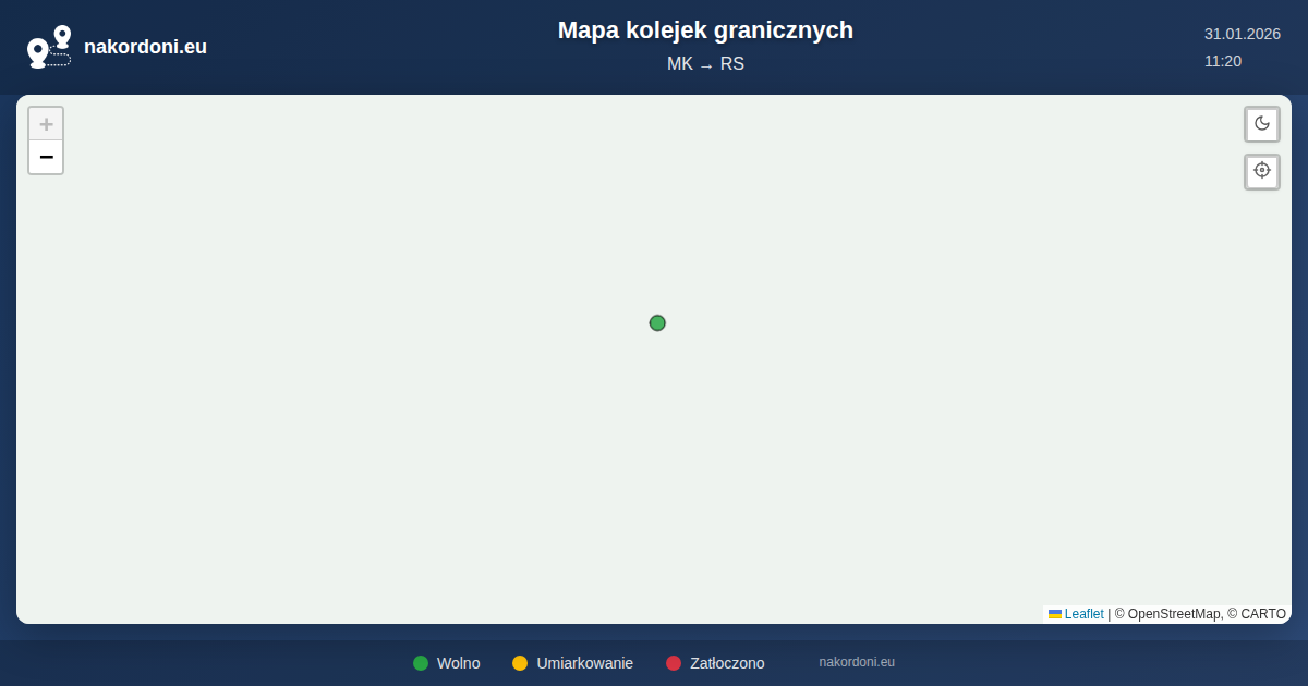 Interaktywna mapa granicy Macedonia Północna — Serbia z kolejkami na żywo, prognozą i statusem przejść