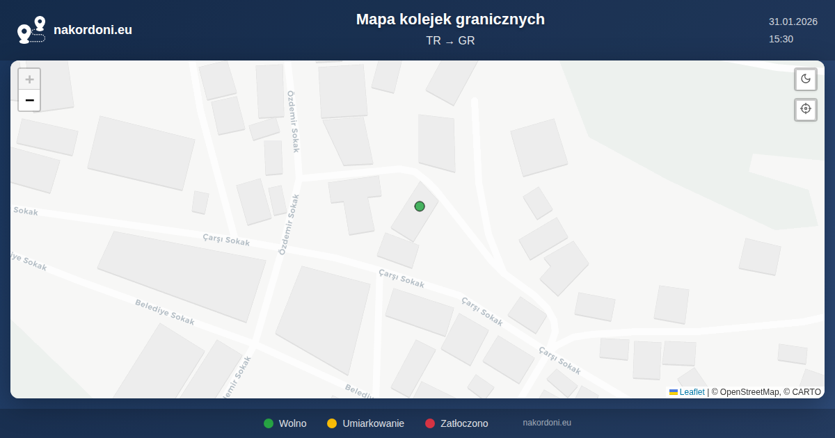 Interaktywna mapa granicy Turcja — Grecja z kolejkami na żywo, prognozą i statusem przejść