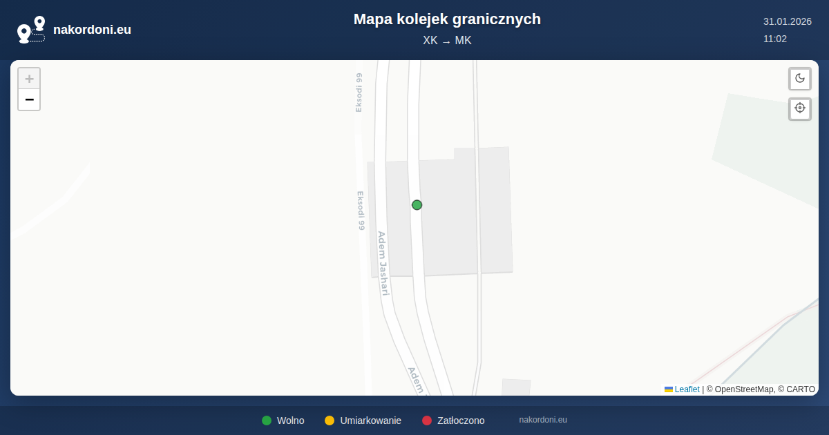 Interaktywna mapa granicy Kosowo — Macedonia Północna z kolejkami na żywo, prognozą i statusem przejść