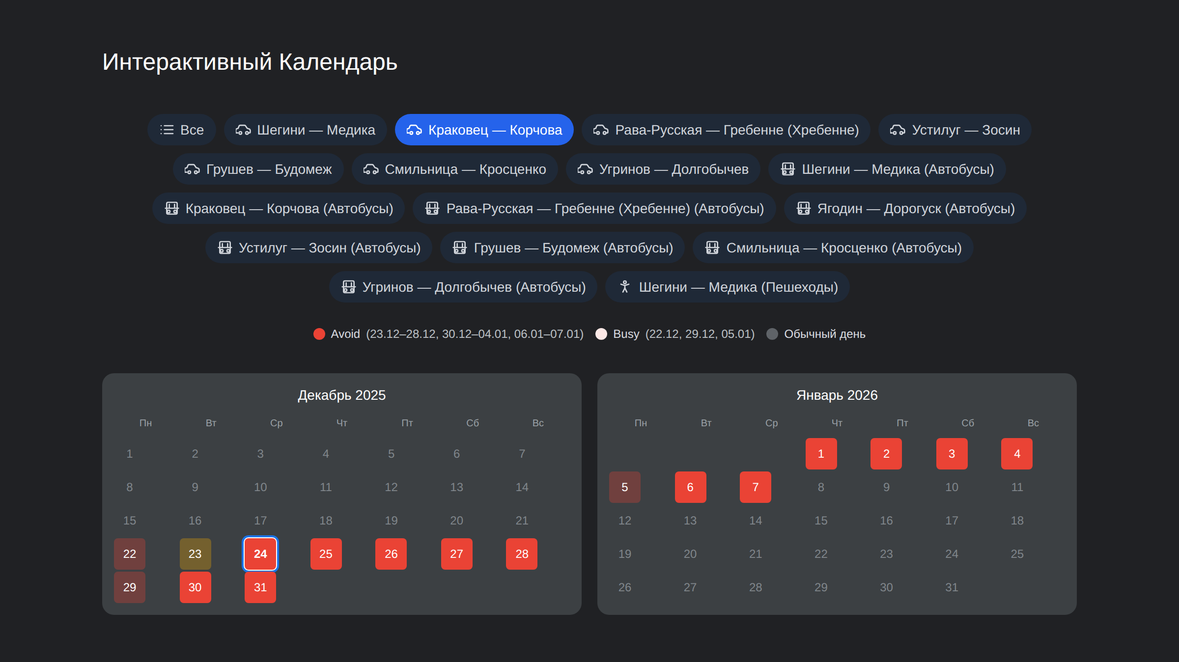 During the holiday period 22.12–07.01.2026, expect increased traffic at the border. We track queues at 16 checkpoints in real-time.