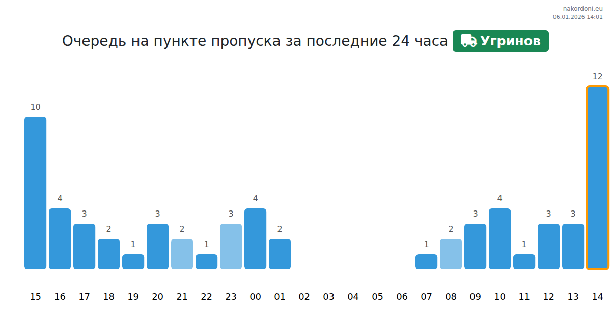Планируйте свои поездки заранее, используя актуальную информацию о очередях на границе на пункте пропуска Угринов - грузовой транспорт, чтобы сделать ваш переход быстрым и удобным. Обратите особое внимание на эти часы, чтобы избежать пиковых нагрузок и сократить время ожидания.
