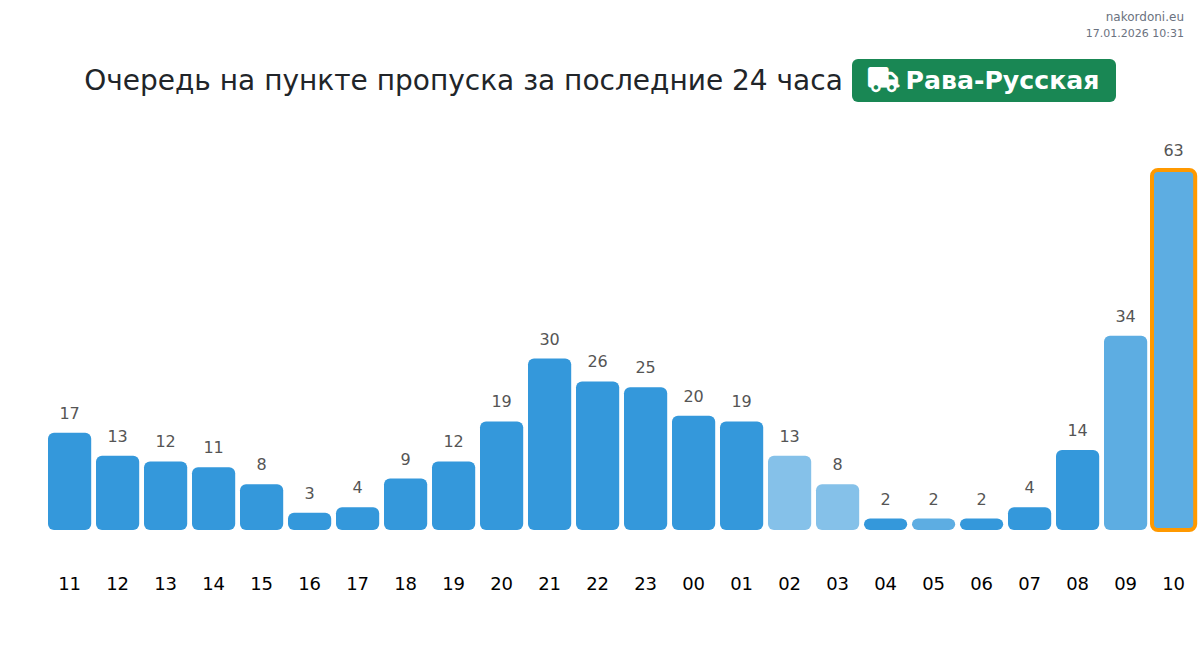 Планируйте свои поездки заранее, используя актуальную информацию о очередях на границе на пункте пропуска Рава-Русская - грузовой транспорт, чтобы сделать ваш переход быстрым и удобным. Обратите особое внимание на эти часы, чтобы избежать пиковых нагрузок и сократить время ожидания.