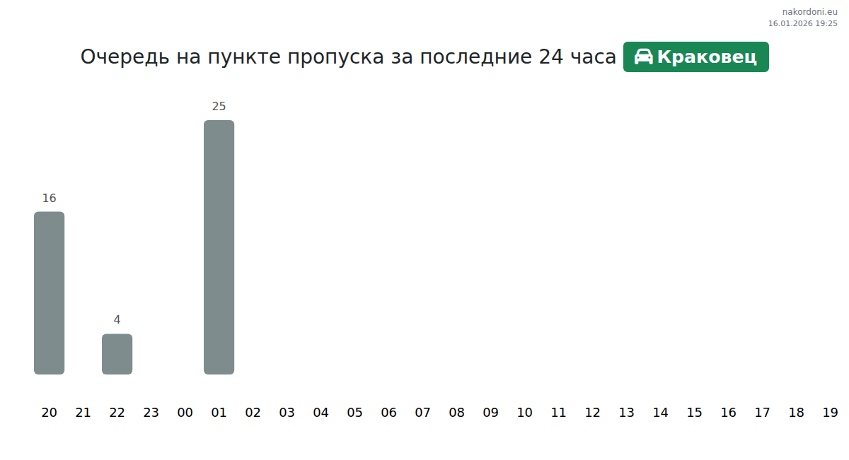 Планируйте свои поездки заранее, используя актуальную информацию о очередях на границе на пункте пропуска Краковец - легковой автомобиль TaxFREE (Красная линия), чтобы сделать ваш переход быстрым и удобным. Обратите особое внимание на эти часы, чтобы избежать пиковых нагрузок и сократить время ожидания.