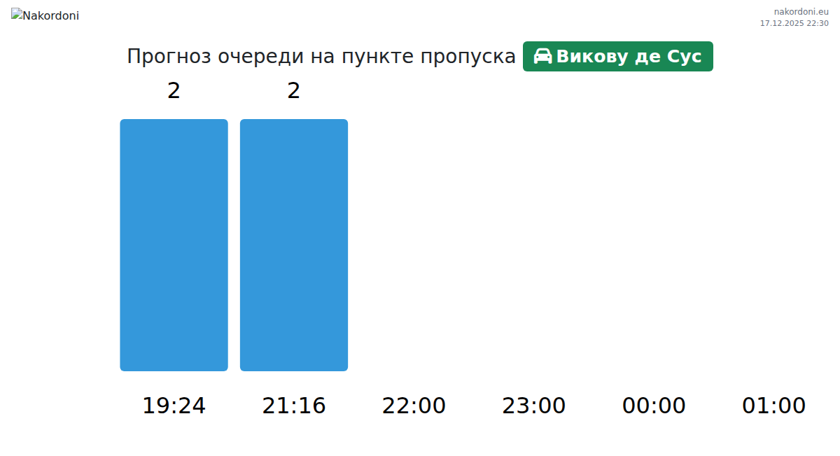 Чтобы избежать длинных очередей на границе на пункте пропуска Викову де Сус - легковой автомобиль, рекомендуем планировать пересечение границы в часы наименьшей нагрузки. Согласно данным за прошлые сутки, наименьшее количество автомобилей наблюдалось между :00 и 1:00 часами. Это идеальное время для пересечения границы, чтобы сэкономить время и избежать задержек.