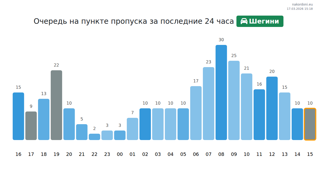 Планируйте свои поездки заранее, используя актуальную информацию о очередях на границе на пункте пропуска Шегини - легковой автомобиль, чтобы сделать ваш переход быстрым и удобным. Обратите особое внимание на эти часы, чтобы избежать пиковых нагрузок и сократить время ожидания.