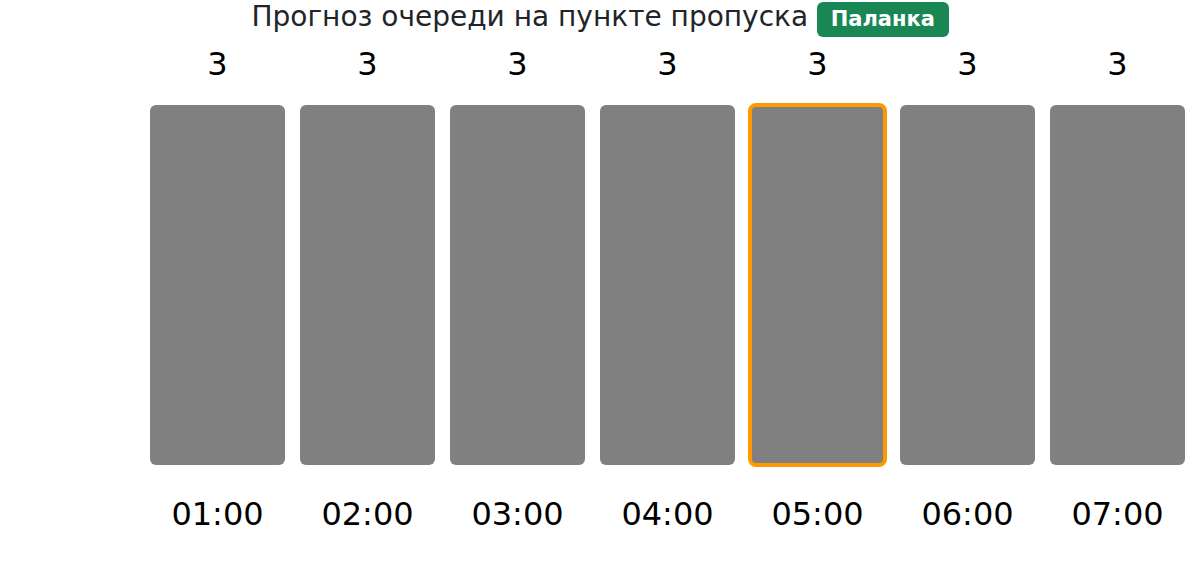 * - Этот прогноз предназначен для тех, кто только что прибыл и ожидает начала процесса регистрации (въезда на территорию пункта пропуска). Здесь отображается приблизительное время ожидания регистрации, учитывая часовой пояс: Europe/Chisinau.