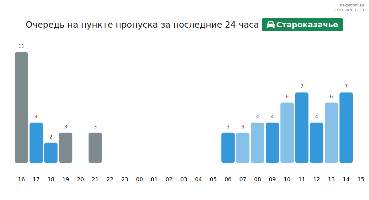 За период 16.01.2026 с 00:00 до 23:59 на границе на пункте пропуска Староказачье - легковой автомобиль были зафиксированы следующие ключевые моменты: