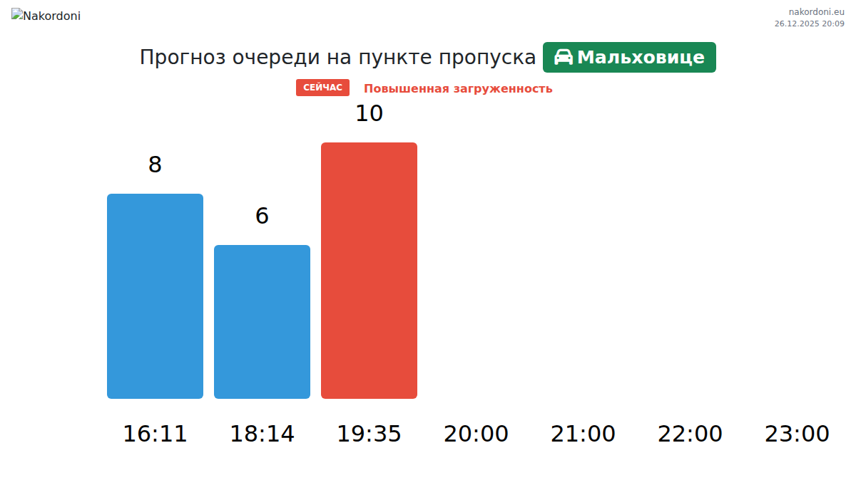 Планируйте свои поездки заранее, используя актуальную информацию о очередях на границе на пункте пропуска Мальховице - легковой автомобиль, чтобы сделать ваш переход быстрым и удобным. Обратите особое внимание на эти часы, чтобы избежать пиковых нагрузок и сократить время ожидания.
