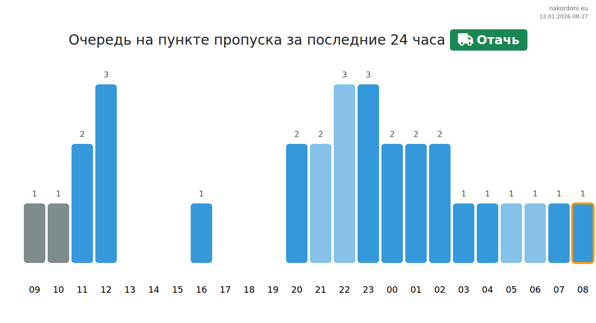 Планируйте свои поездки заранее, используя актуальную информацию о очередях на границе на пункте пропуска Отачь - грузовой транспорт, чтобы сделать ваш переход быстрым и удобным. Обратите особое внимание на эти часы, чтобы избежать пиковых нагрузок и сократить время ожидания.