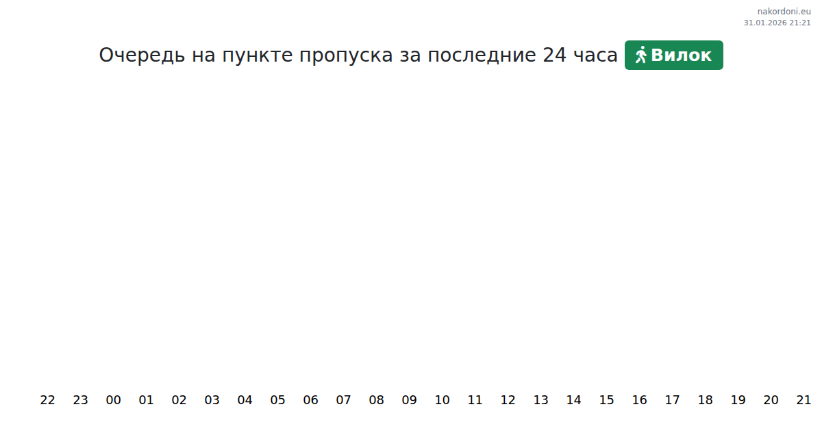 На пункте пропуска Вилок ожидаемое время ожидания для автомобилей составляет 15-15 минут. Пиковые часы приходятся на 21:00, 22:00 и 23:00, а наиболее благоприятное время для пересечения границы — с 00:00 до 02:00.